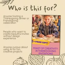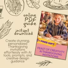 Unlike generic design tutorials, Feast of Creativity: AI Thanksgiving Invitations combines practical AI instruction with creative inspiration. You’ll not only learn how to use AI tools—you’ll master how to make them reflect your personal style and holiday spirit. This is more than a digital download; it’s your secret weapon for turning simple ideas into stunning, share-worthy invitations.